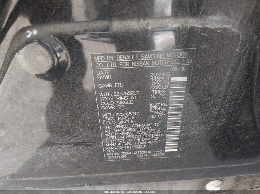 2016 Nissan Rogue S/Sl/Sv