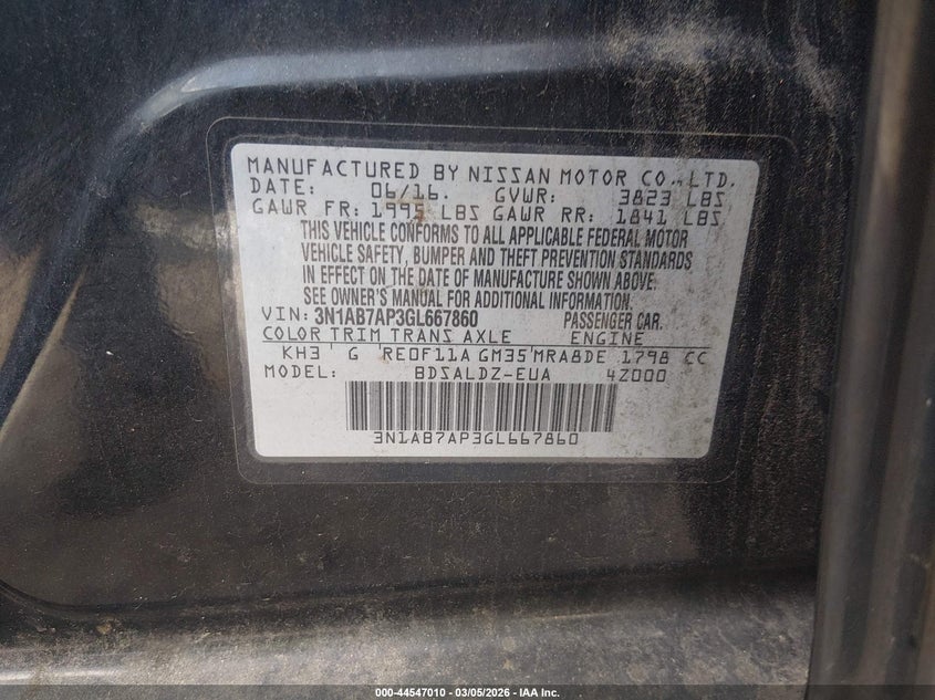 2016 Nissan Sentra Fe+ S/S/Sl/Sr/Sv