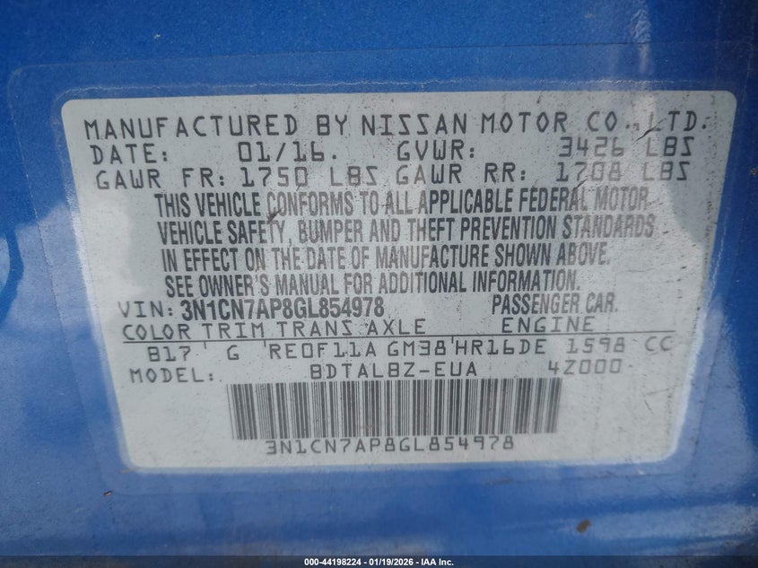 2016 Nissan Versa 1.6 S/1.6 S+/1.6 Sl/1.6 Sv