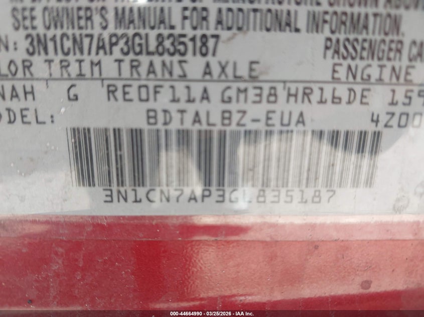2016 Nissan Versa 1.6 S/1.6 S+/1.6 Sl/1.6 Sv