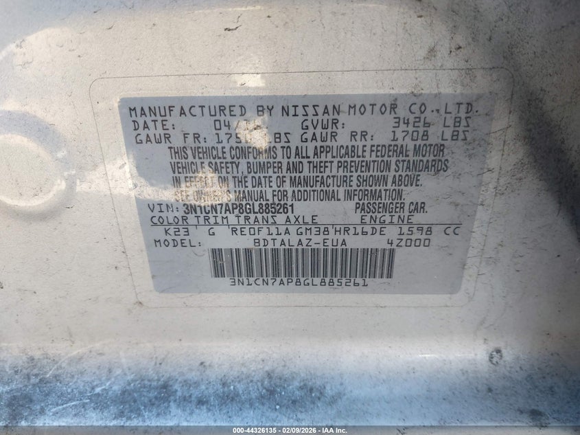 2016 Nissan Versa 1.6 S+