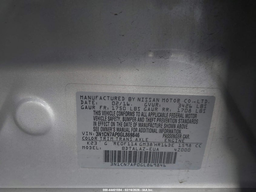 2016 Nissan Versa 1.6 S+