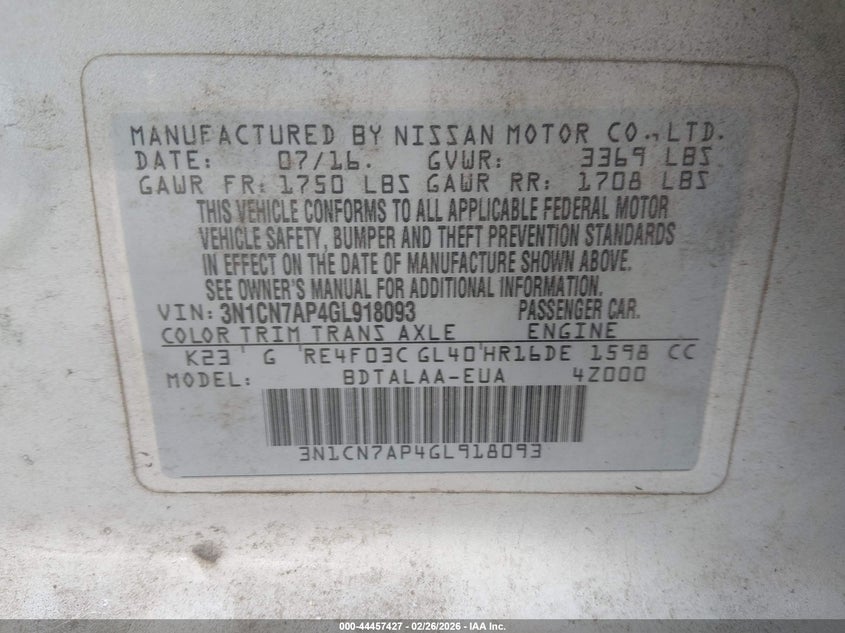 2016 Nissan Versa 1.6 S