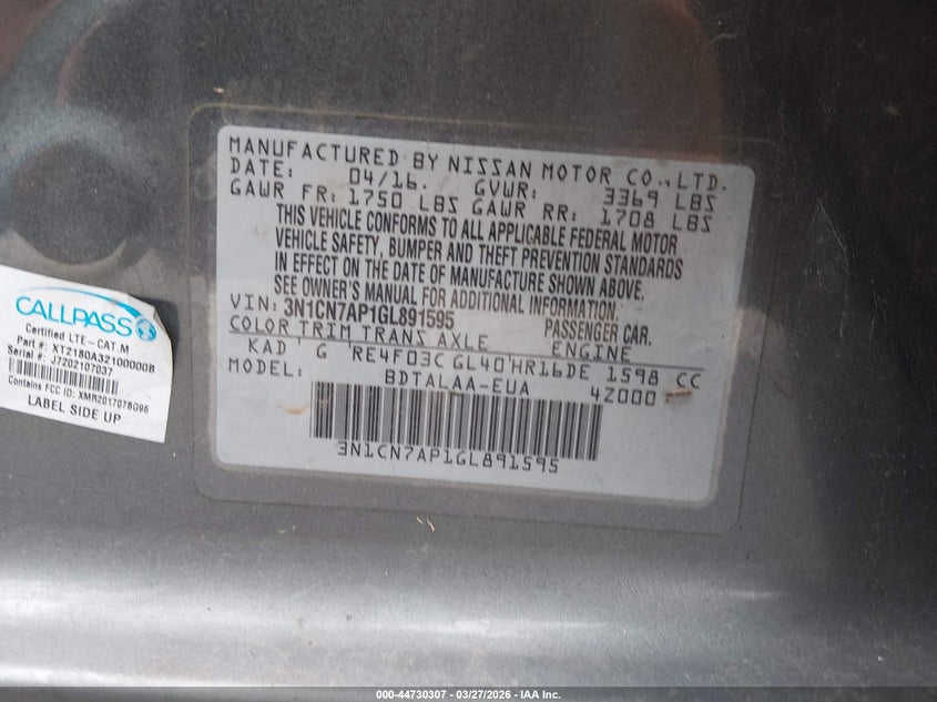 2016 Nissan Versa 1.6 S