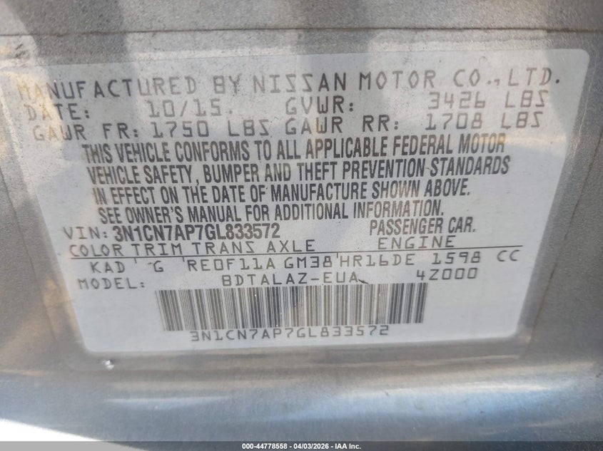 2016 Nissan Versa 1.6 S+