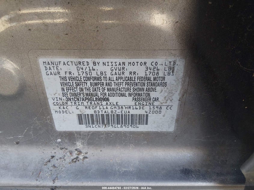2016 Nissan Versa 1.6 Sv