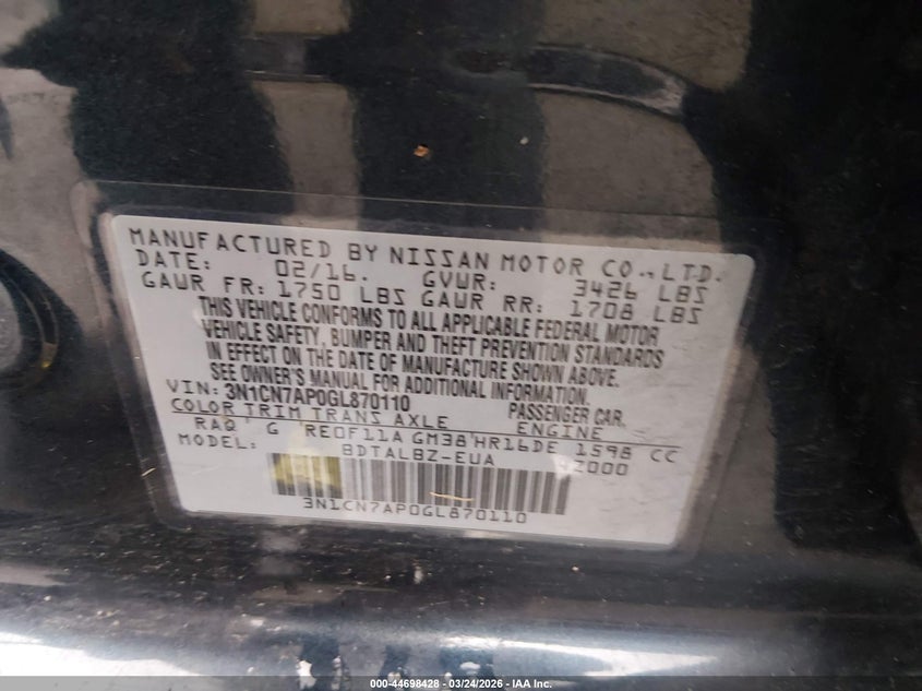 2016 Nissan Versa 1.6 Sv