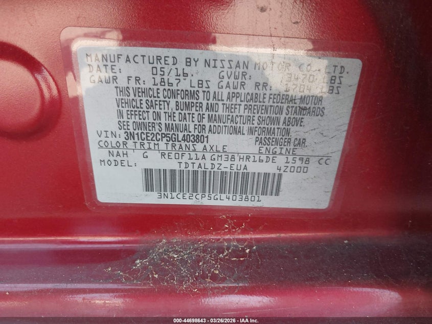 2016 Nissan Versa Note S (Sr)/S Plus/Sl/Sr/Sv