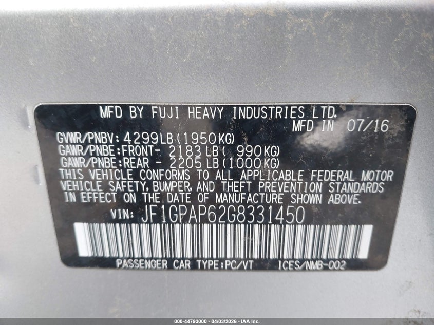 2016 Subaru Impreza 2.0I Sport Premium