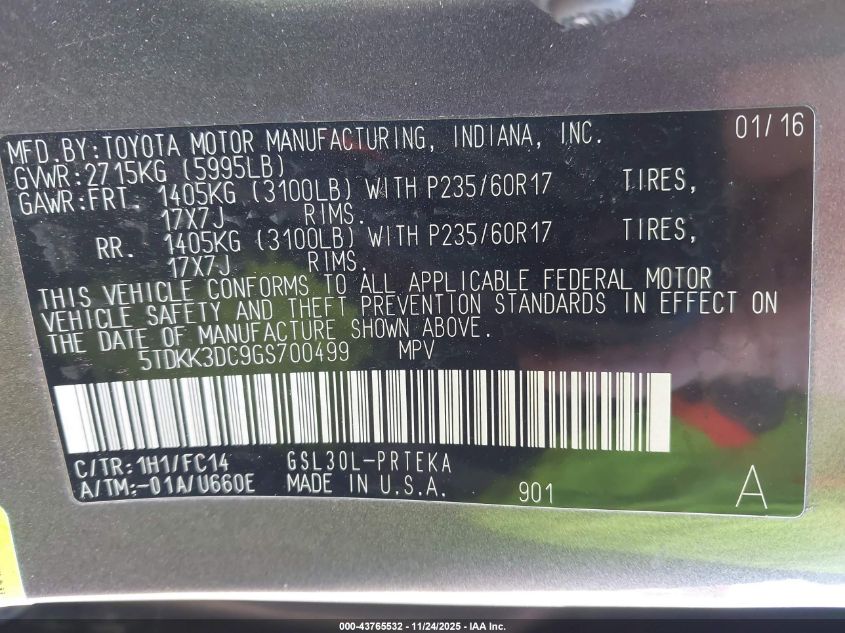 2016 Toyota Sienna Le 8 Passenger