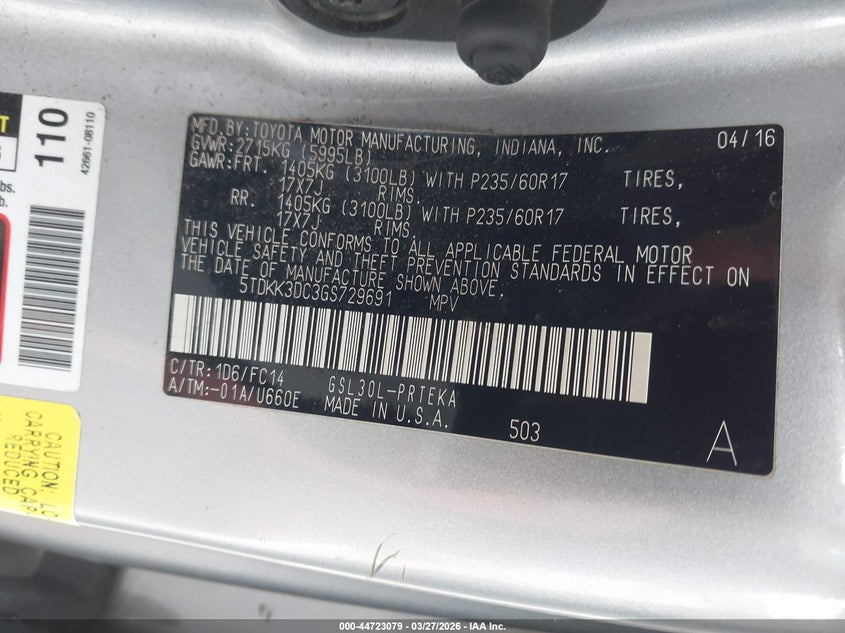 2016 Toyota Sienna Le 8 Passenger