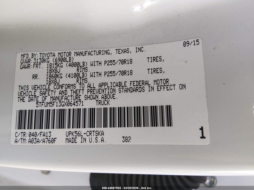 2016 Toyota Tundra Sr 4.6L V8