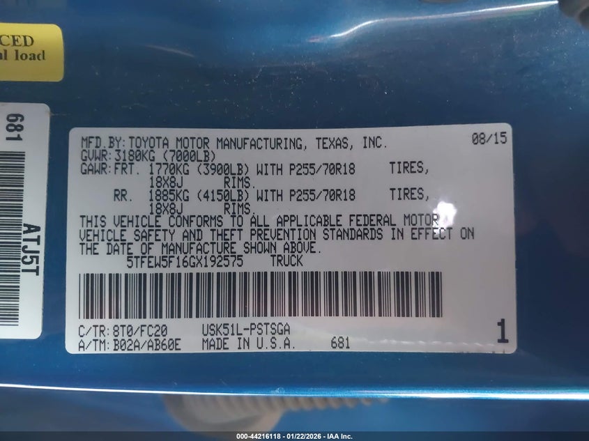 2016 Toyota Tundra Sr5 5.7L V8