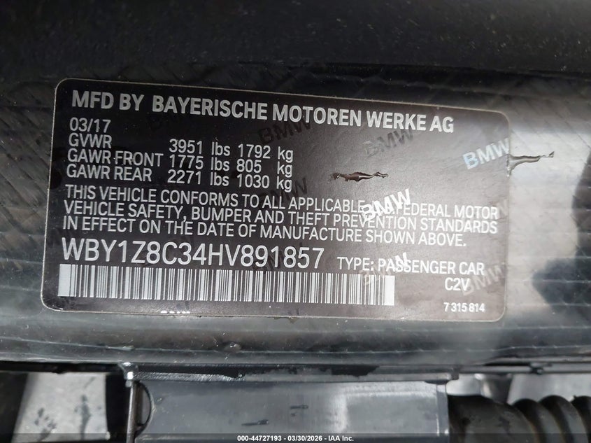 2017 BMW I3 94 Ah W/Range Extender
