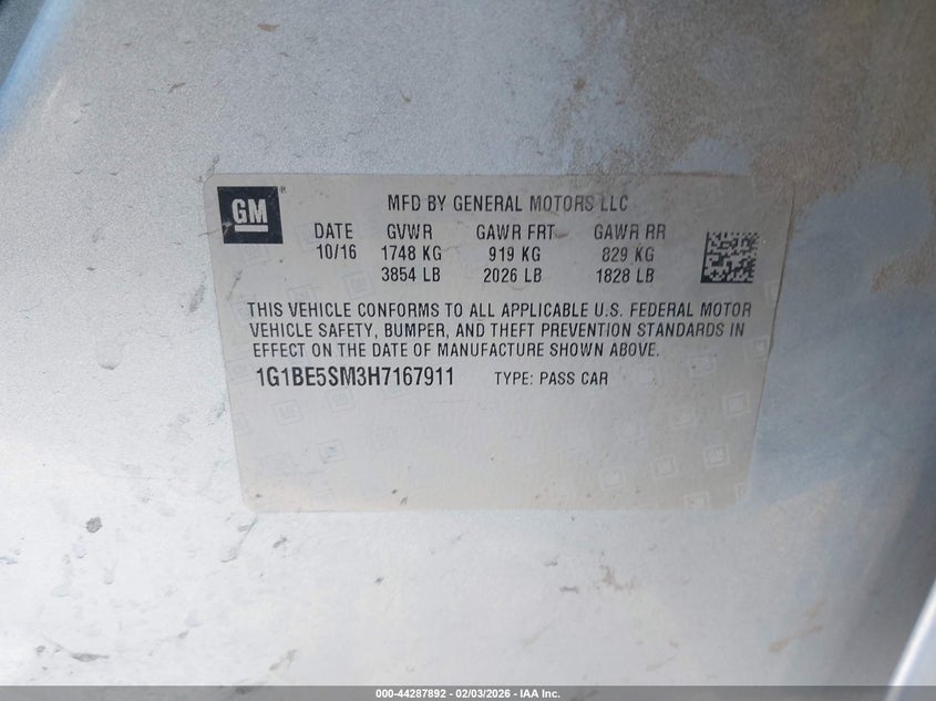 2017 Chevrolet Cruze Lt Auto