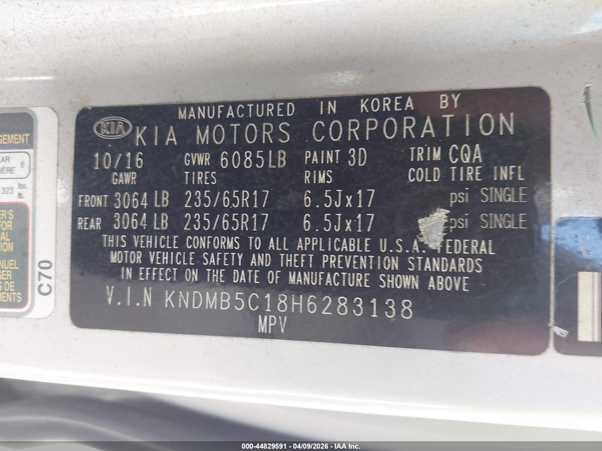 2017 Kia Sedona Lx