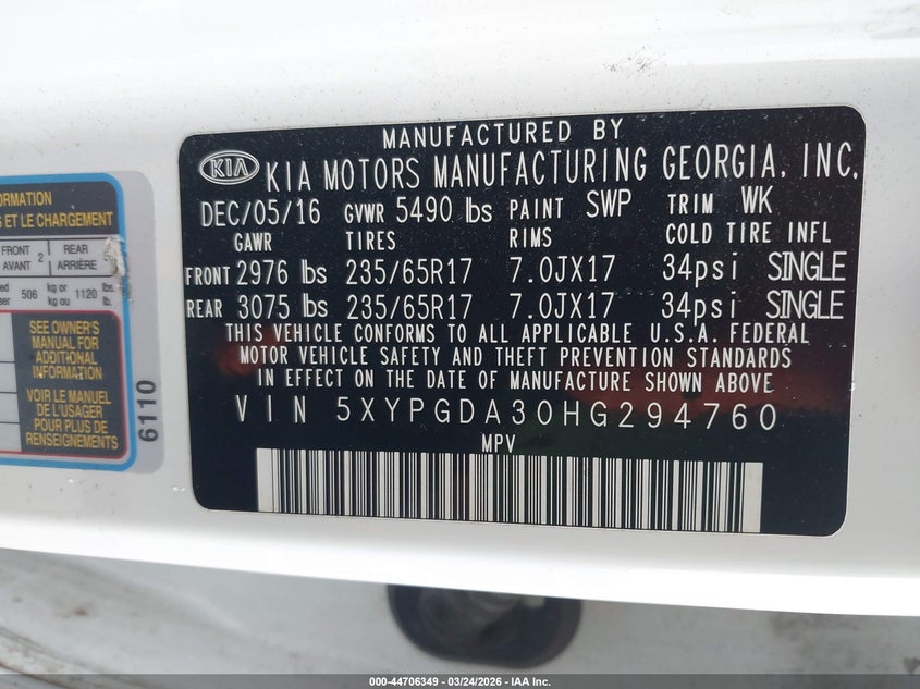 2017 Kia Sorento 2.4L Lx