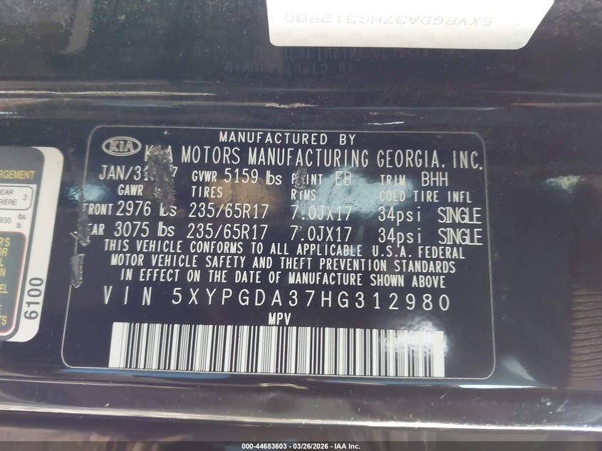 2017 Kia Sorento 2.4L Lx