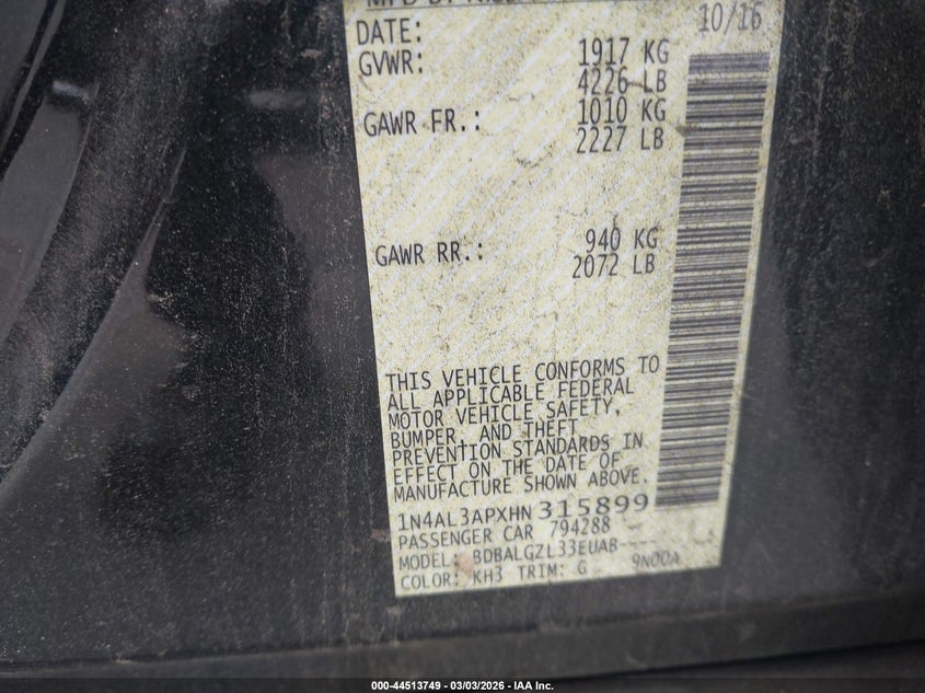 2017 Nissan Altima 2.5 S