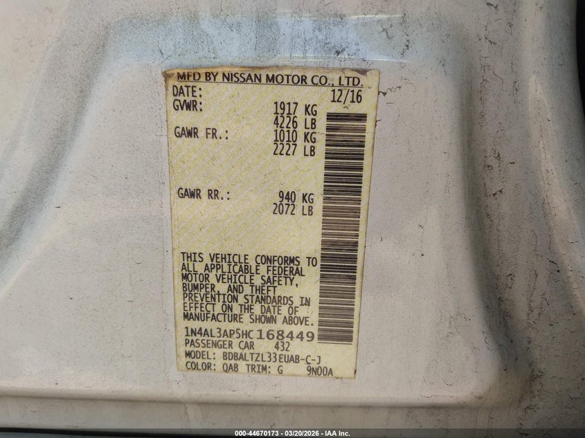 2017 Nissan Altima 2.5 Sl