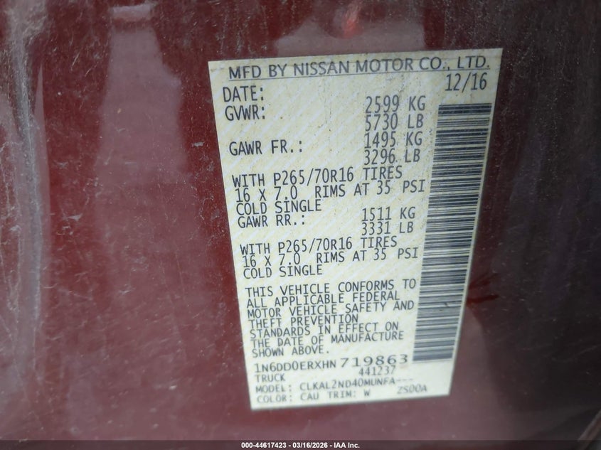 2017 Nissan Frontier Sv