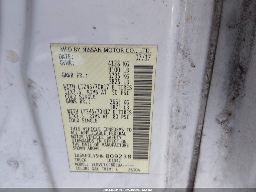 2017 Nissan Nv Cargo Nv2500 Hd Sv V6