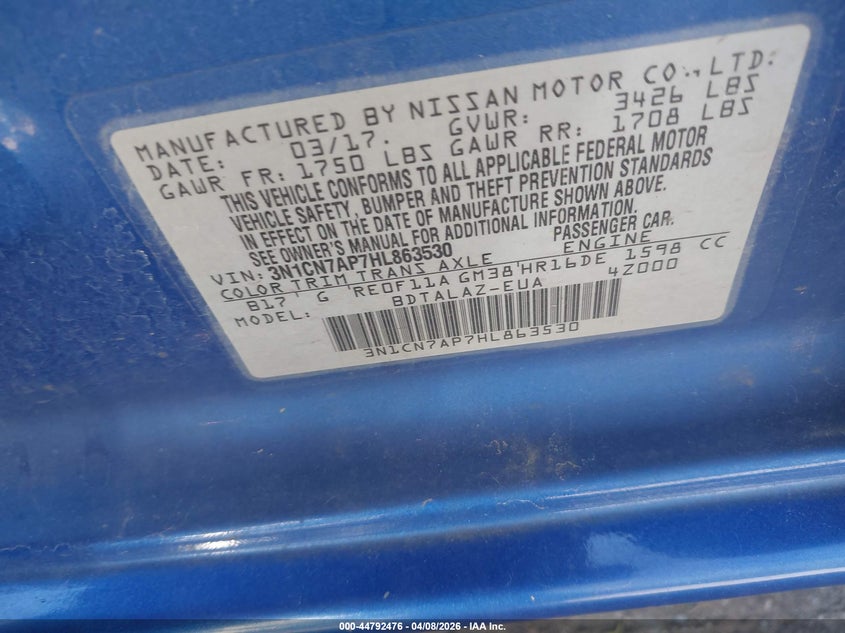 2017 Nissan Versa 1.6 S+