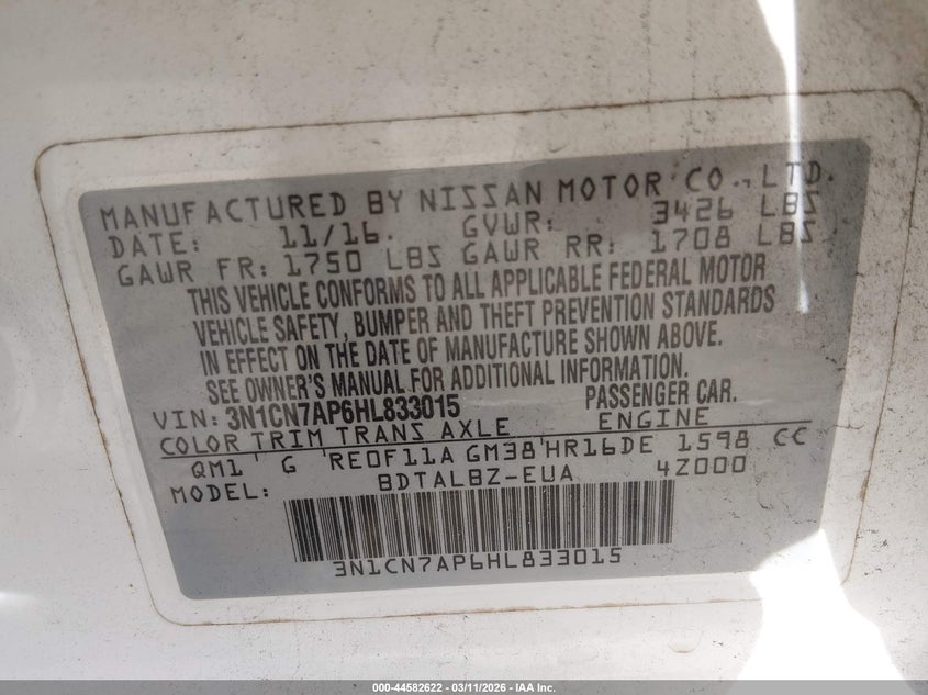 2017 Nissan Versa 1.6 Sv