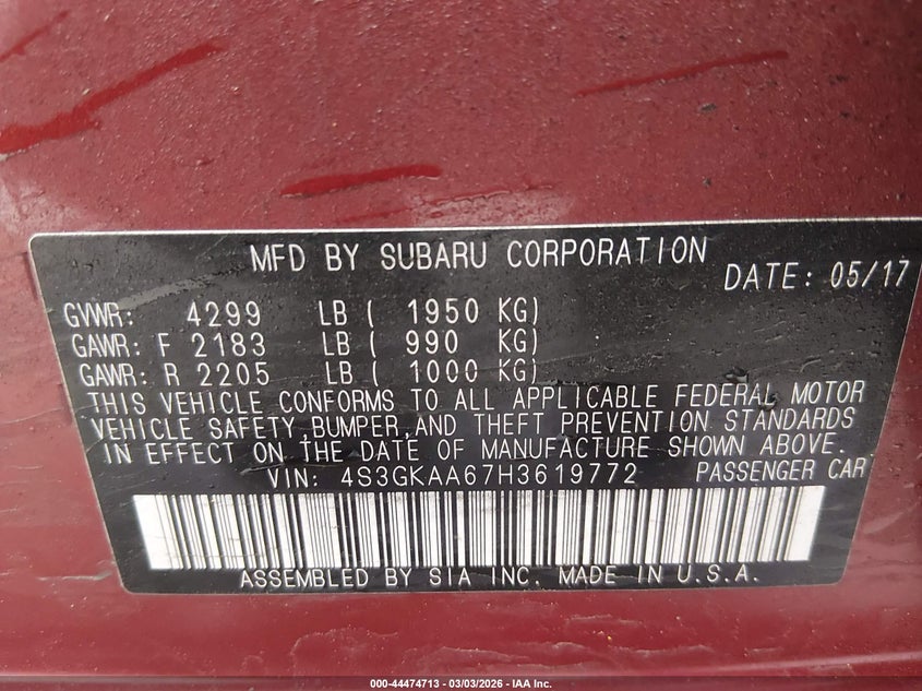 2017 Subaru Impreza 2.0I