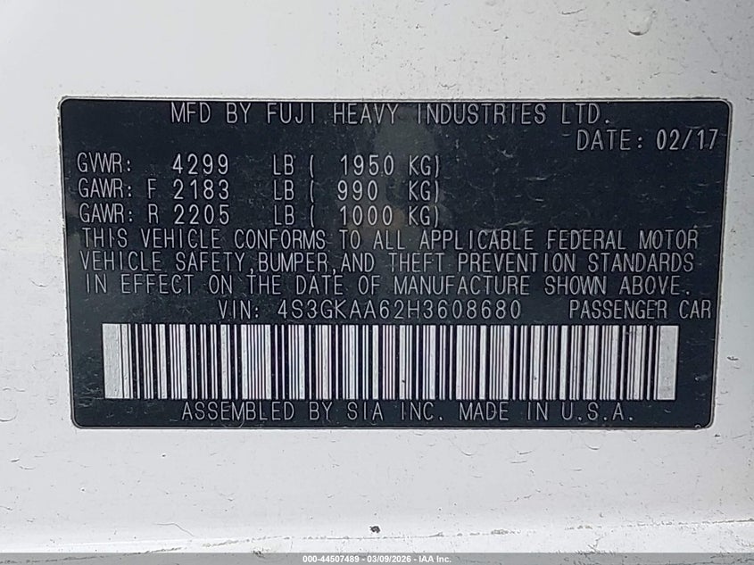 2017 Subaru Impreza 2.0I