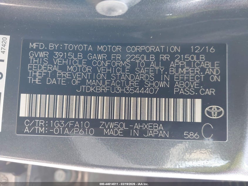 2017 Toyota Prius Two