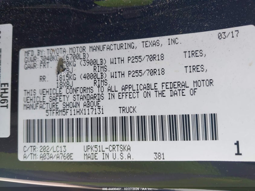 2017 Toyota Tundra Sr 4.6L V8