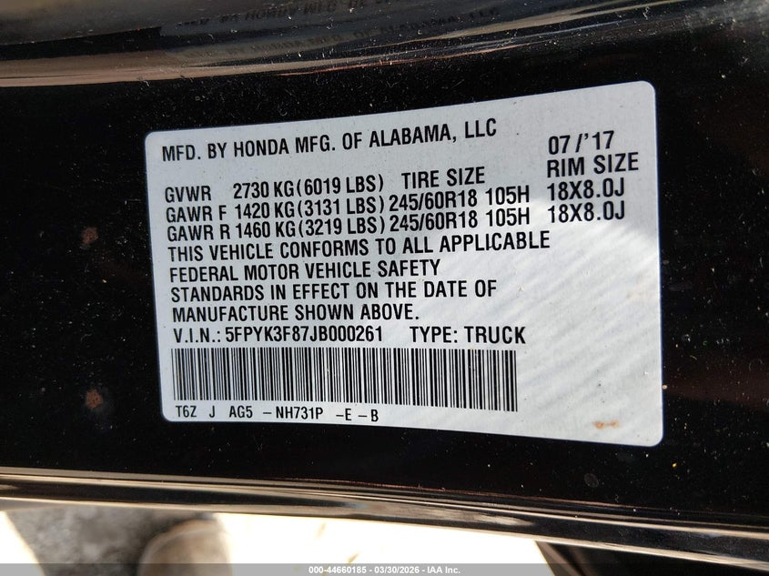 2018 Honda Ridgeline Black Edition