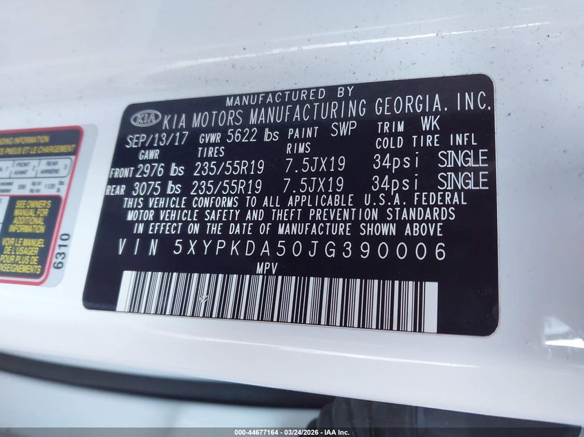 2018 Kia Sorento 3.3L Sxl