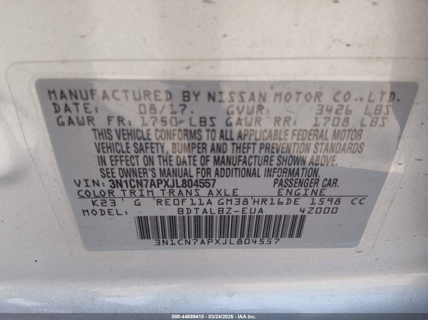 2018 Nissan Versa 1.6 Sv