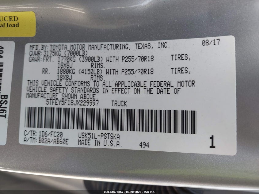 2018 Toyota Tundra Sr5 5.7L V8