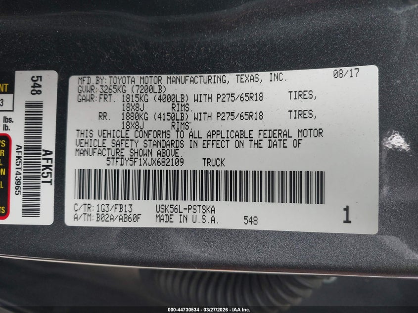 2018 Toyota Tundra Sr5 5.7L V8