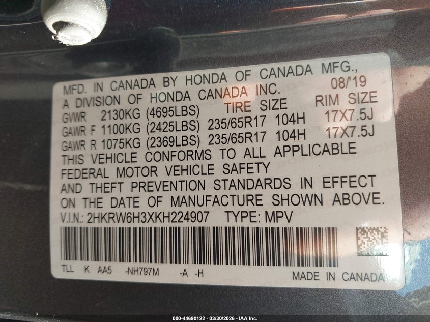 2019 Honda Cr-V Lx