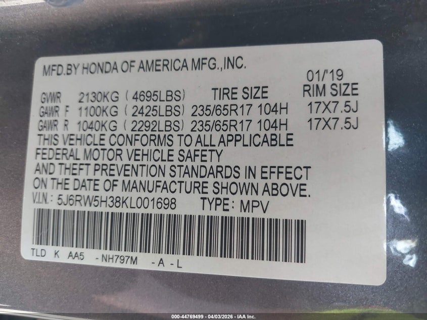 2019 Honda Cr-V Lx
