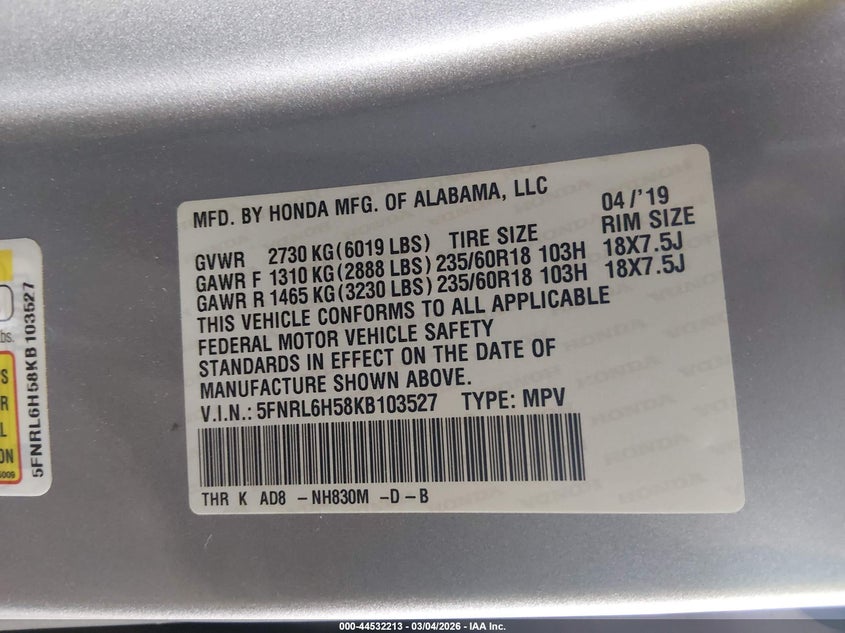 2019 Honda Odyssey Ex