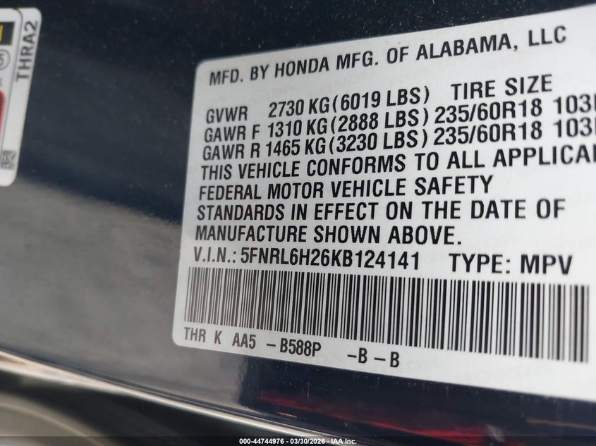 2019 Honda Odyssey Lx