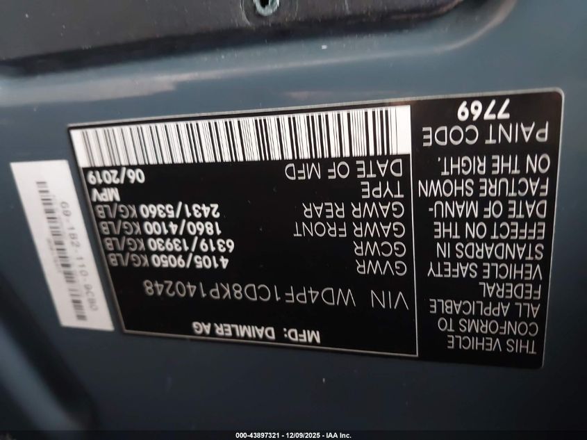 2019 Mercedes-Benz Sprinter 2500 High Roof V6