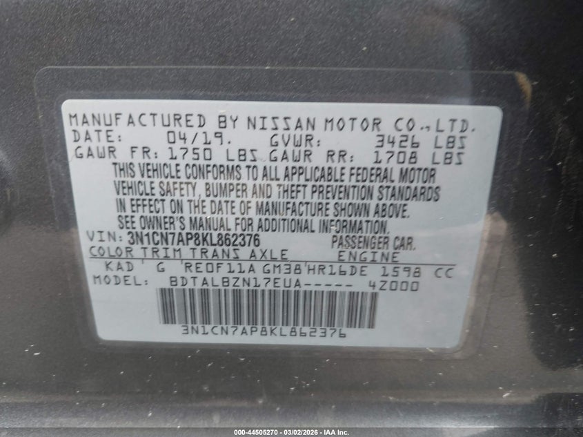 2019 Nissan Versa 1.6 Sv