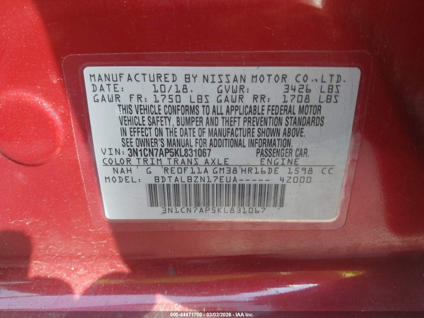 2019 Nissan Versa 1.6 Sv
