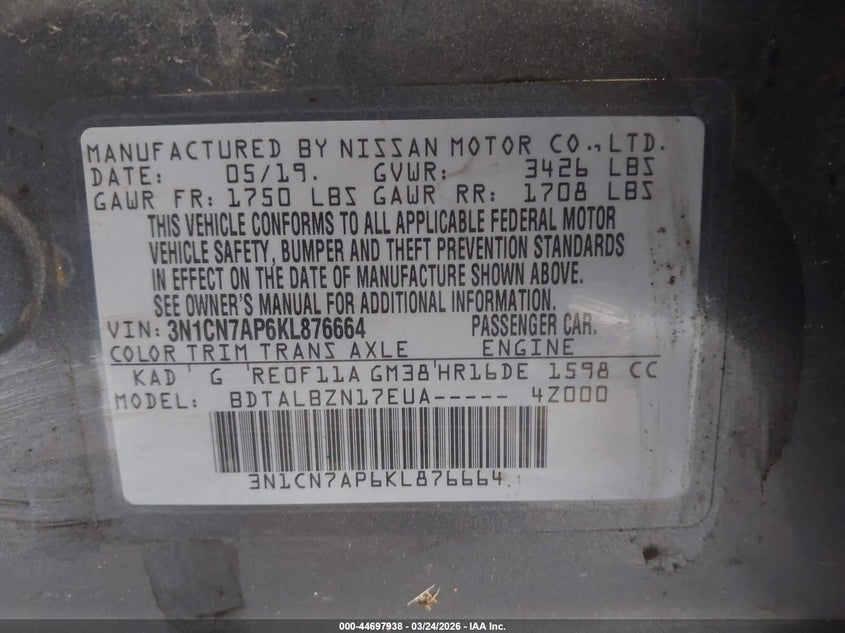 2019 Nissan Versa 1.6 Sv
