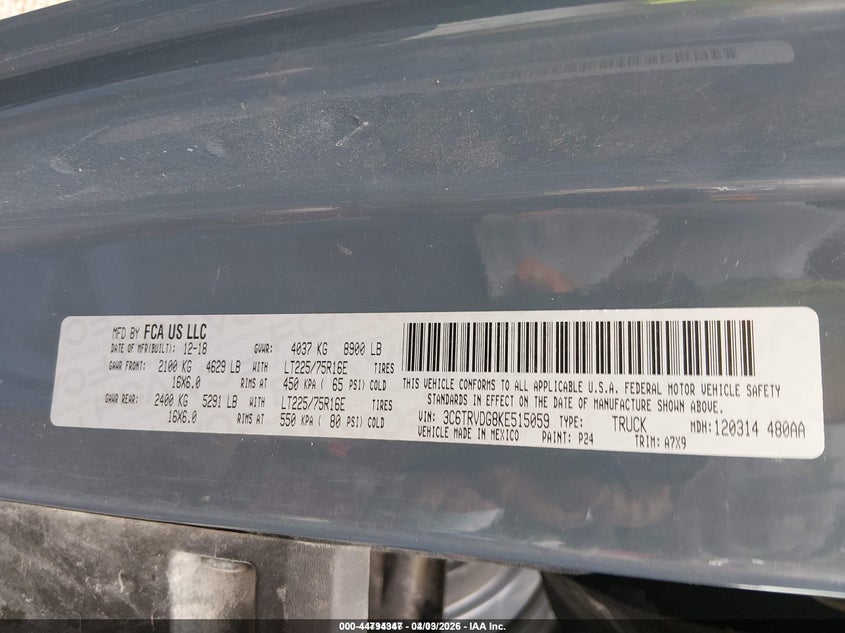 2019 Ram Promaster 2500 High Roof 159 Wb
