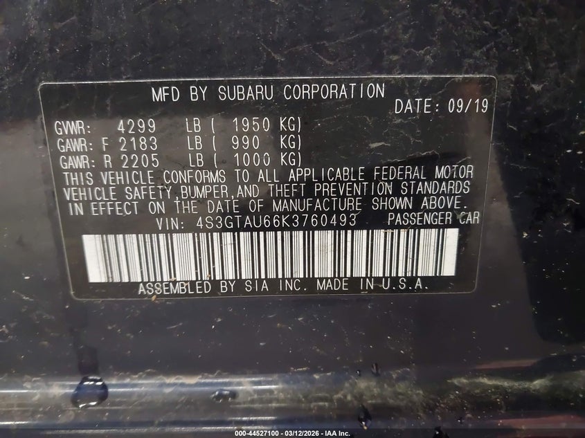 2019 Subaru Impreza 2.0I Limited