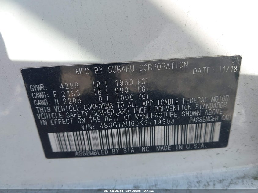 2019 Subaru Impreza 2.0I Limited