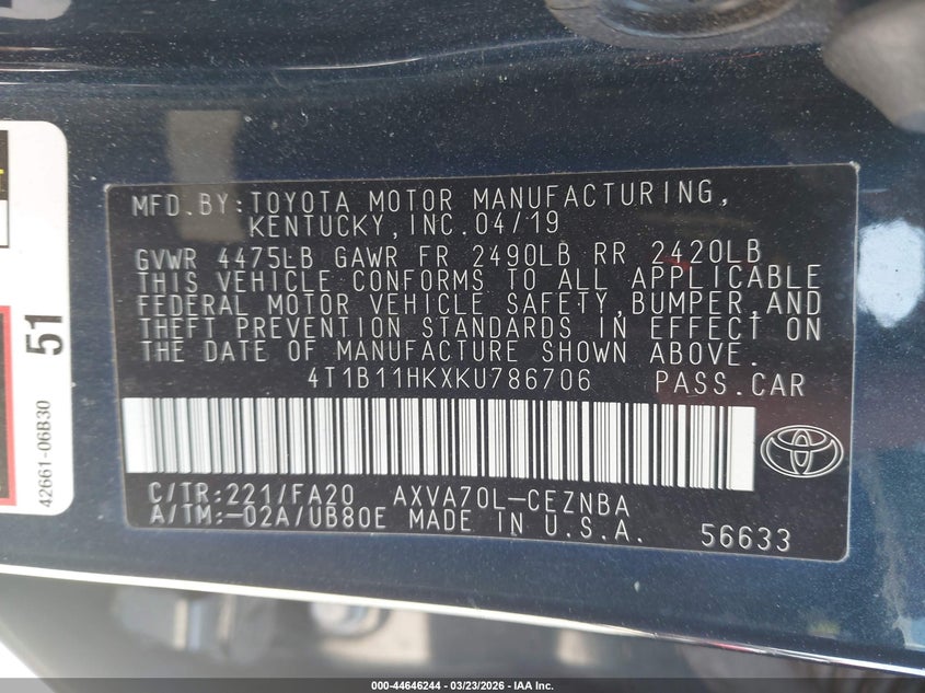 2019 Toyota Camry Le