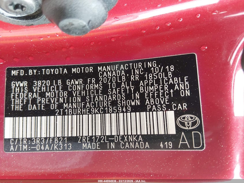 2019 Toyota Corolla L/Le/Xle/Se/Xse
